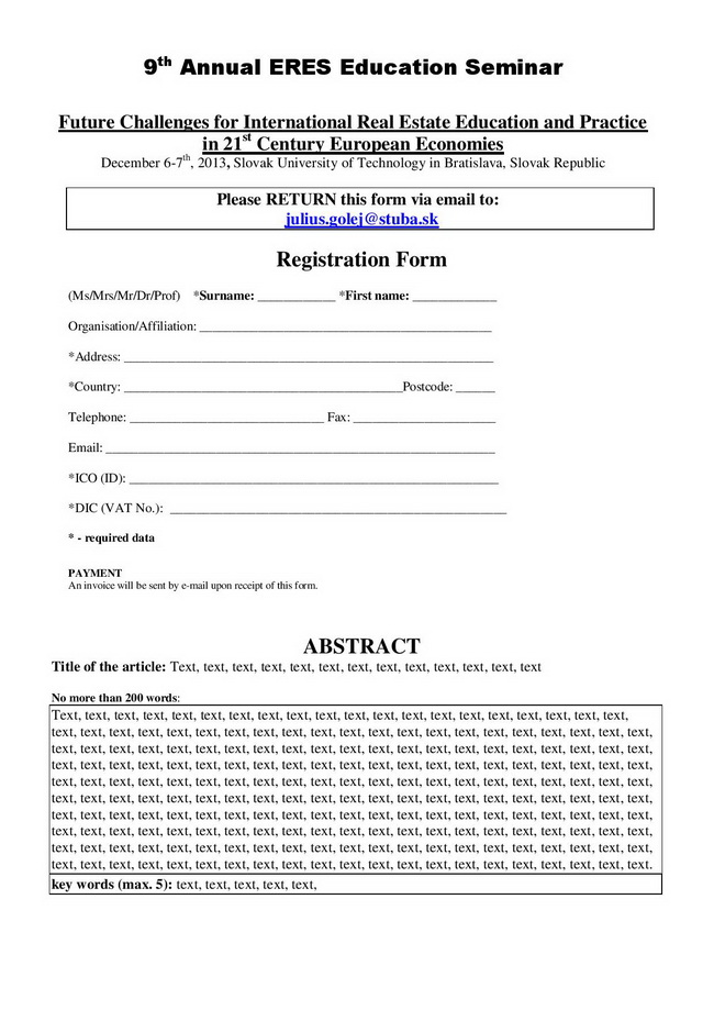 Registration Form and Call for Abstracts